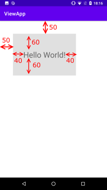Але якщо подивитися на останній скріншот, то можна побачити, що, незважаючи на те, що відступи начебто задано так само, як і в передостанньому прикладі у файлі layout, однак у реальності на екрані ми побачимо відступи із зовсім іншими значеннями. Річ у тім, що методи setPadding() і setMargins() приймають значення в пікселях, тоді як у файлі layout застосовувалися одиниці dp. І щоб використовувати dp також у коді, необхідно виконати перетворення:
