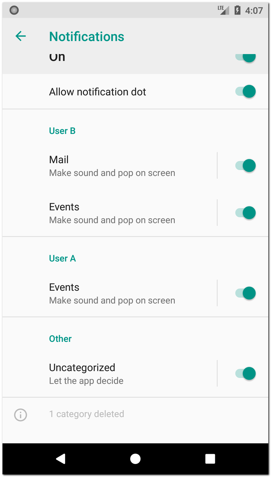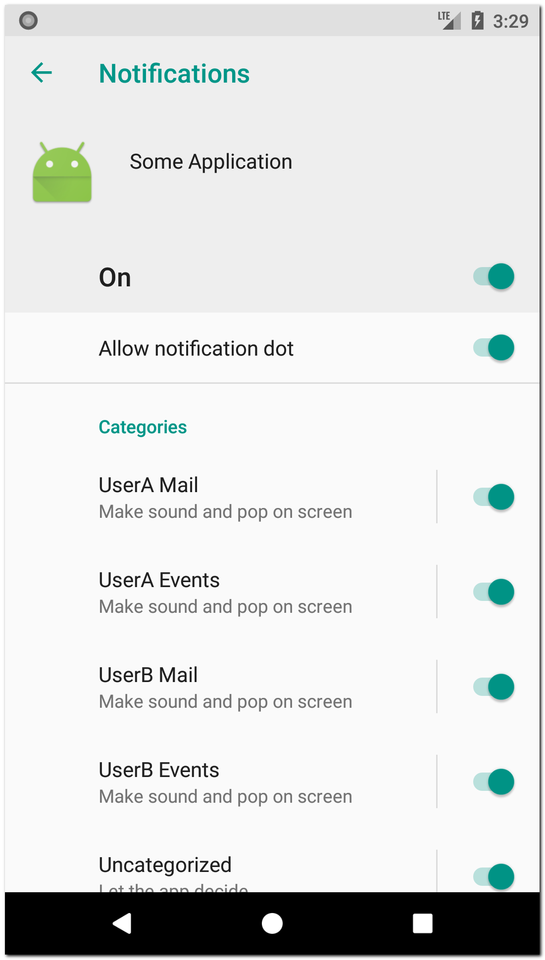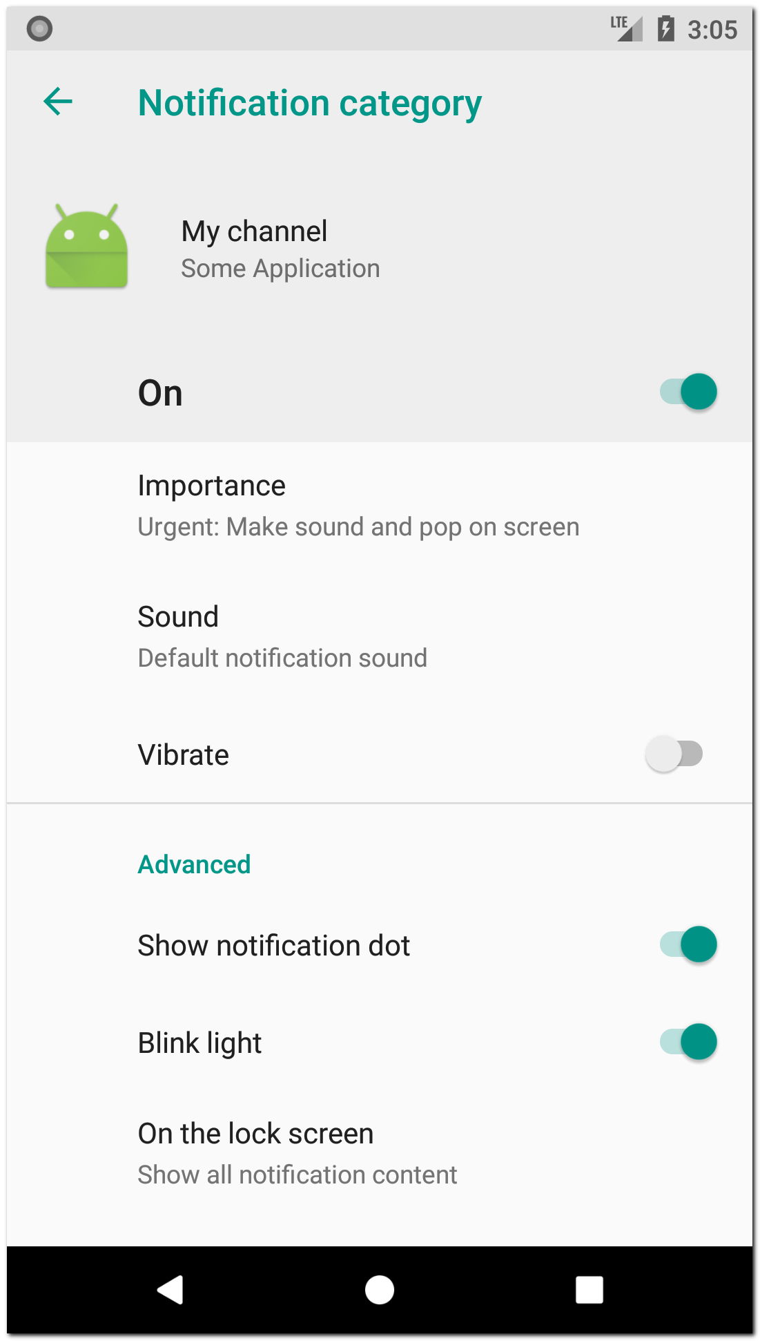 Канали дають змогу розширити ці налаштування і застосовувати їх вибірково. Розробник застосунку створює канал і вказує його ID під час створення повідомлень. Користувач у системних налаштуваннях програми бачить цей канал і може налаштувати його: важливість, звук, вібру тощо. У підсумку всі сповіщення, які належать цьому каналу, відображатимуться з цими налаштуваннями.