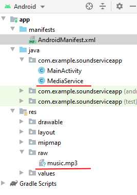 І помістимо в цю папку (res/raw) який-небудь mp3-файл.
