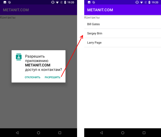 Таким чином, отримувати контакти не складно. Головна складність у роботі з контактами, та й з будь-якими іншими провайдерами контенту, полягає у встановленні дозволів. До Android API 23 достатньо було встановити відповідний дозвіл у файлі маніфесту додатка. Починаючи ж з API 23 (Android Marshmallow) Google змінив схему роботи з дозволами. І тепер користувач сам повинен вирішити, чи буде він давати дозволи додатку. У зв'язку з чим розробники повинні додавати додатковий код.