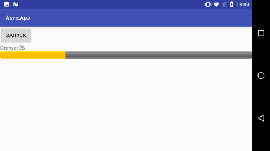 Метод doInBackground() перебирає масив і при кожній ітерації сповіщає систему за допомогою методу publishProgress(item). Оскільки в нашому випадку для індикації використовуються цілі числа, то параметр item має представляти ціле число.