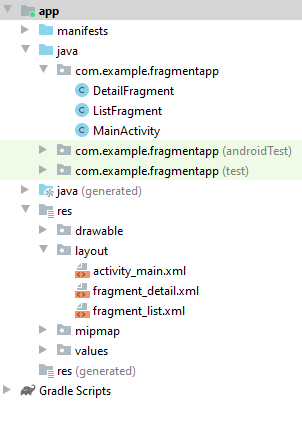 У минулій темі було розроблено додаток, який виводить обидва фрагменти на екран. Продовжимо роботу з цим проектом. Загалом було створено два фрагменти: ListFragment для відображення списку та DetailFragment для відображення обраного елемента у списку. І MainActivity виводила обидва фрагменти на екран: