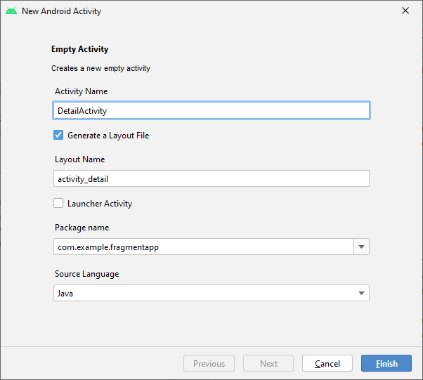 Тепер додамо нову activity, яку назвемо DetailActivity: