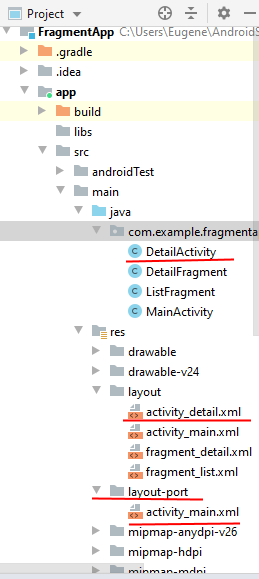 Таким чином, інтерфейс DetailActivity визначатиметься завантажуваним фрагментом DetailFragment.