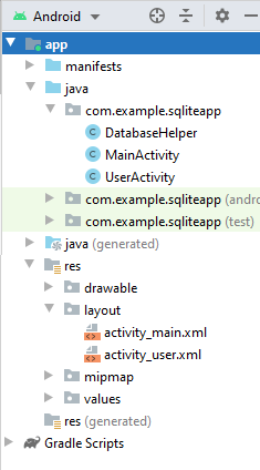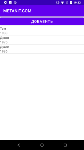 Візьмемо проєкт, створений у попередній темі, де ми мали MainActivity, що виводила список об'єктів, і UserActivity, що давала змогу додавати, редагувати та видаляти об'єкти з БД.