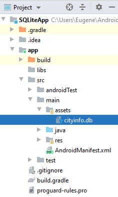 За замовчуванням база даних буде розміщуватися у зовнішньому сховищі, виділеному для додатку в папці /data/data/[назва_пакета]/databases/, і щоб отримати повний шлях до бази даних, у конструкторі використовується вираз: