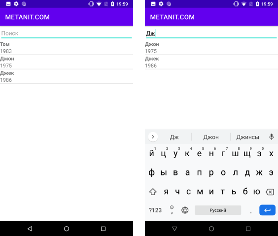 Розглянемо, як ми можемо створити в додатку на Android динамічний пошук за базою даних SQLite.